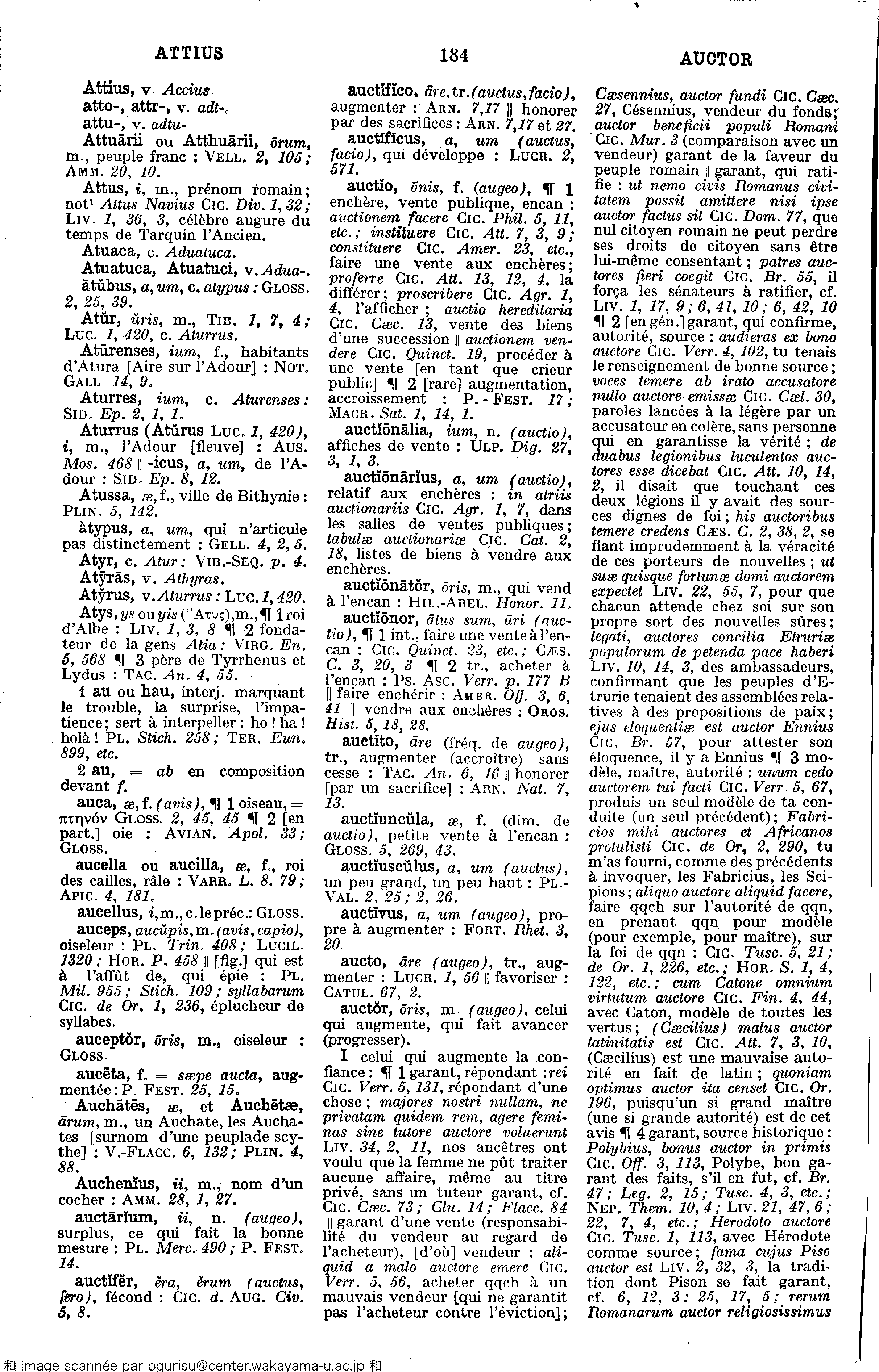 tu m'as fourni, comme des précédents à invoquer, les Fabricius, les Scipions ; aliquo auctore aliquid facere, faire qqch. sur l'autorité de qqn, en prenant qqn pour modèle (pour exemple, pour maître), sur la foi de qqn :