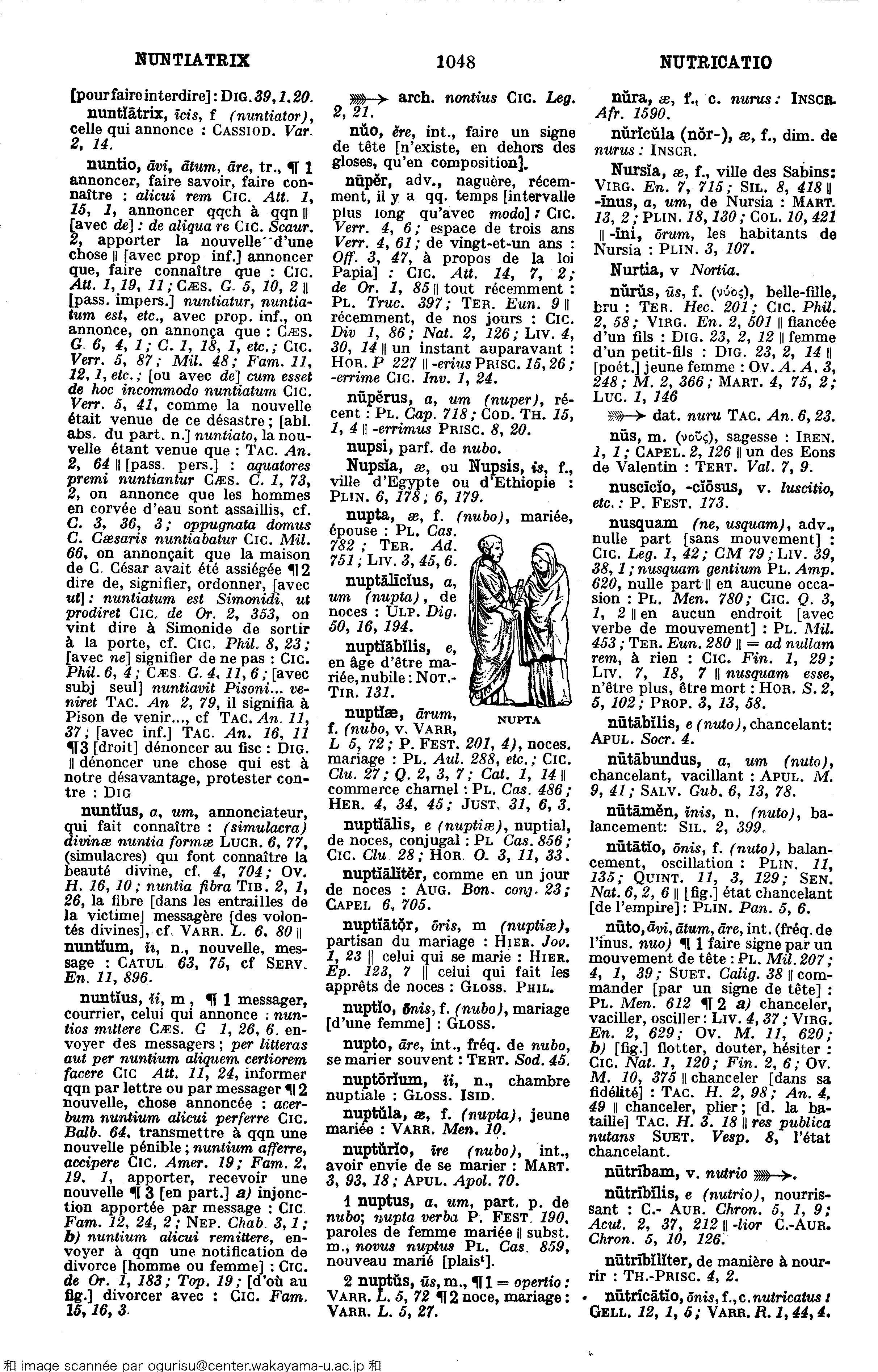 [pass. impers.] nuntiatur, nuntiatum est, etc., avec prop. inf., on annonce, on annonça que :